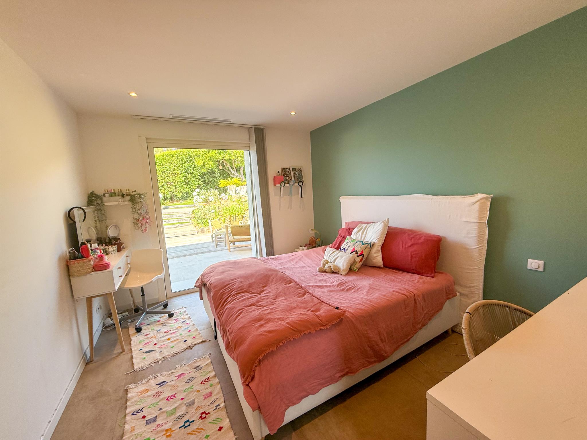 Trois chambres en suite avec salle d'eau privative, chacune ayant un accès direct au jardin.