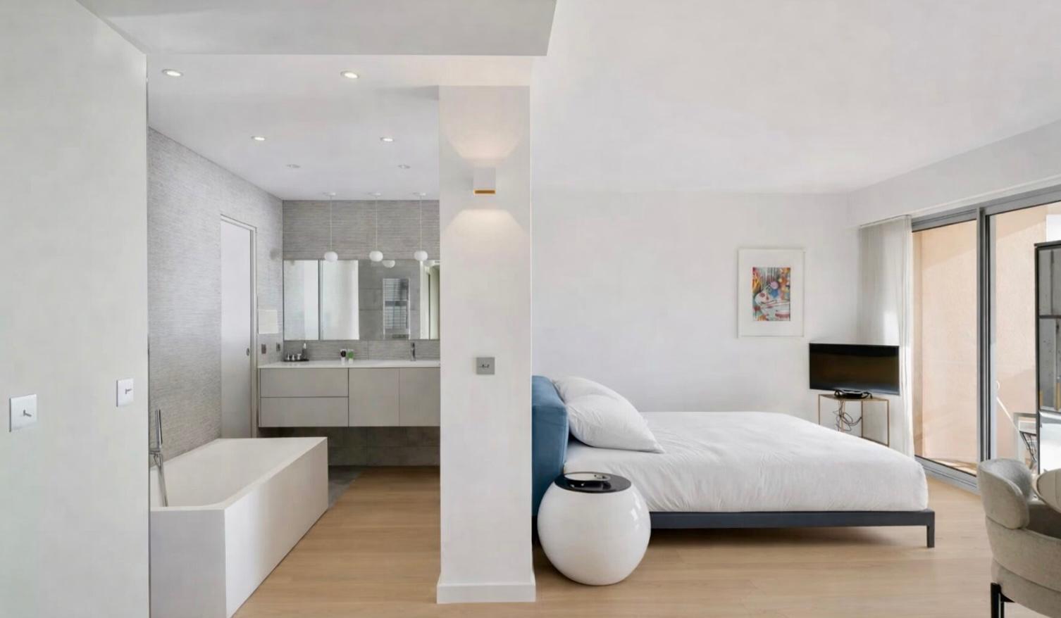 Grande et très confortable suite parentale disposant d'un accès direct sur la terrasse , d'un dressing ainsi que d'une salle de bains avec baignoire et douche à l'italienne.