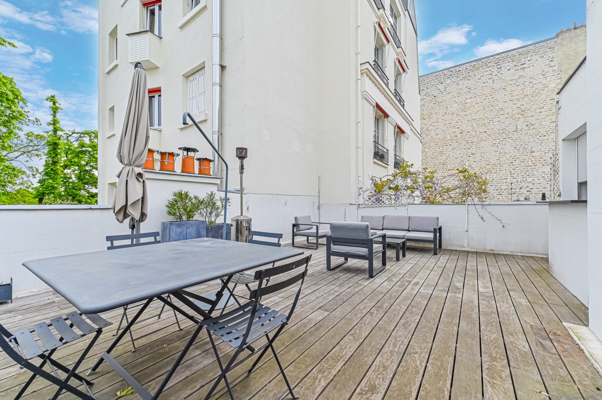 Sur le toit de la maison, une terrasse aménagée de 50 m² avec cuisine d'été et rangements.