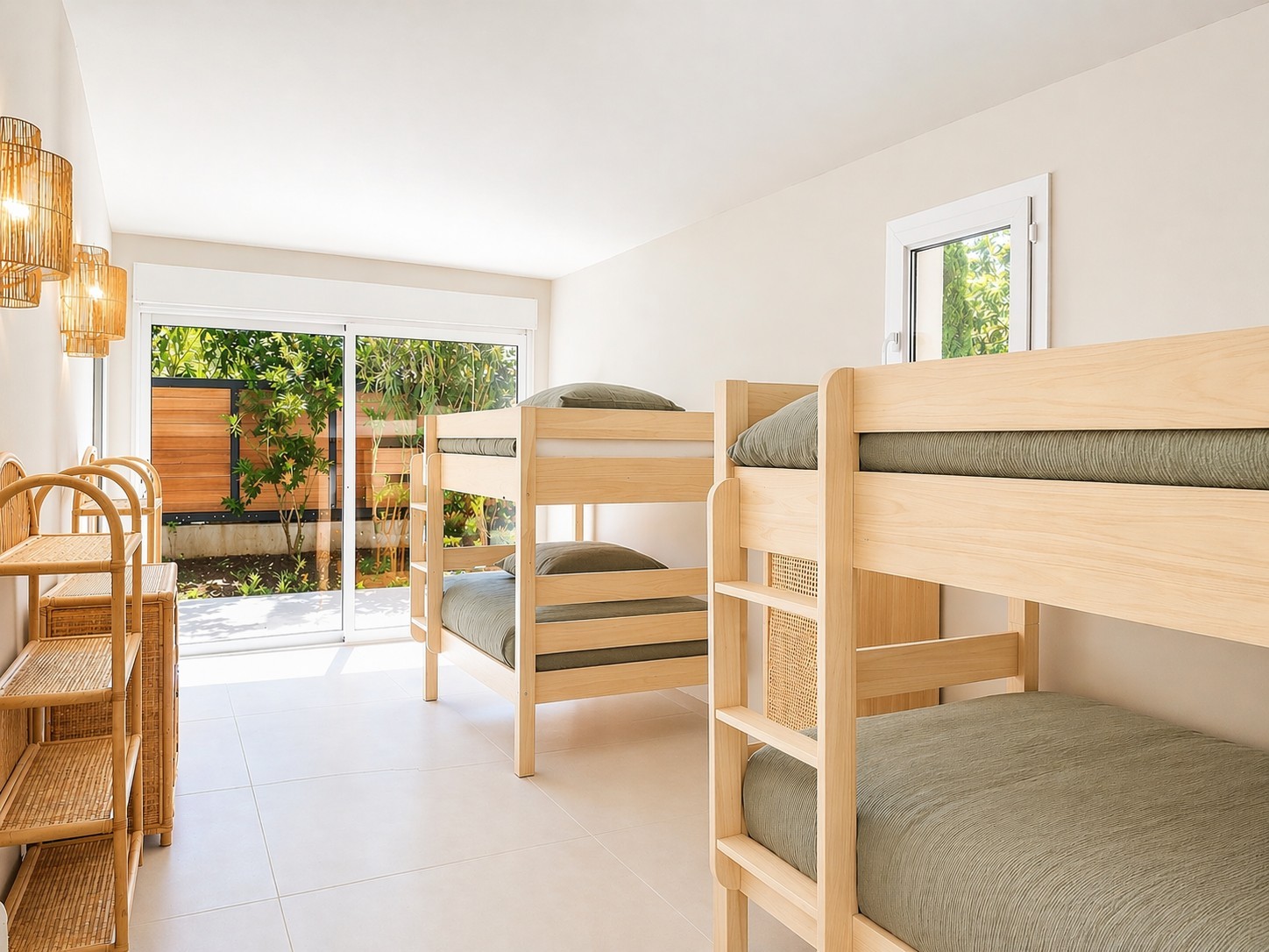 L'espace nuit, situé en rez-de-chaussée, propose une distribution idéale avec une élégante suite parentale, trois chambres confortables ainsi qu'un spacieux dortoir bénéficiant de sa propre salle d'eau, permettant une capacité d'accueil optimale.