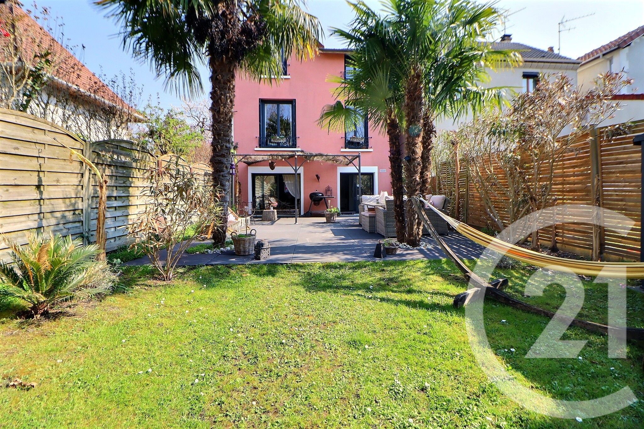 Idéalement située à proximité immédiate des commerces et des écoles, la maison bénéficie d'un emplacement stratégique : à seulement 2 minutes du tram T4 et à 15 minutes de la gare RER.