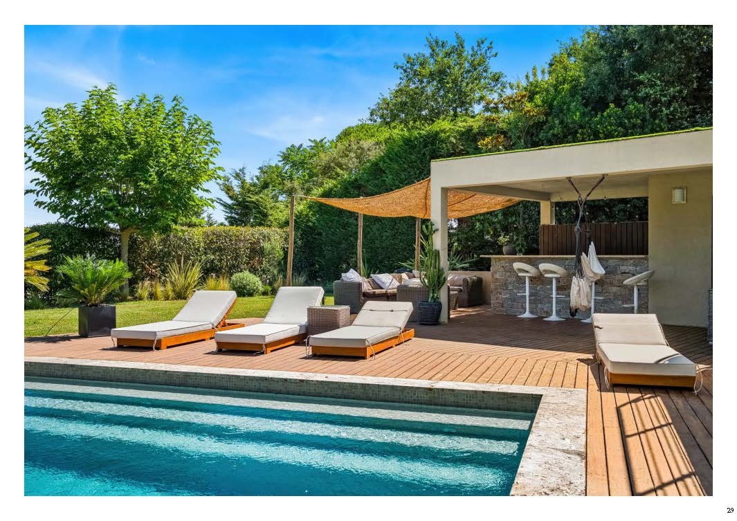 Le jardin paysager d'environ 2 300 m² a été élaboré avec grand soin et agrémenté d'essences méditerranéennes. Il se fond parfaitement dans son environnement verdoyant. Une confortable piscine de dimensions 12 x 5.5, ses terrasses et son Pool-House viennent compléter ce havre de paix. Cette propriété dispose également d'un garage fermé.