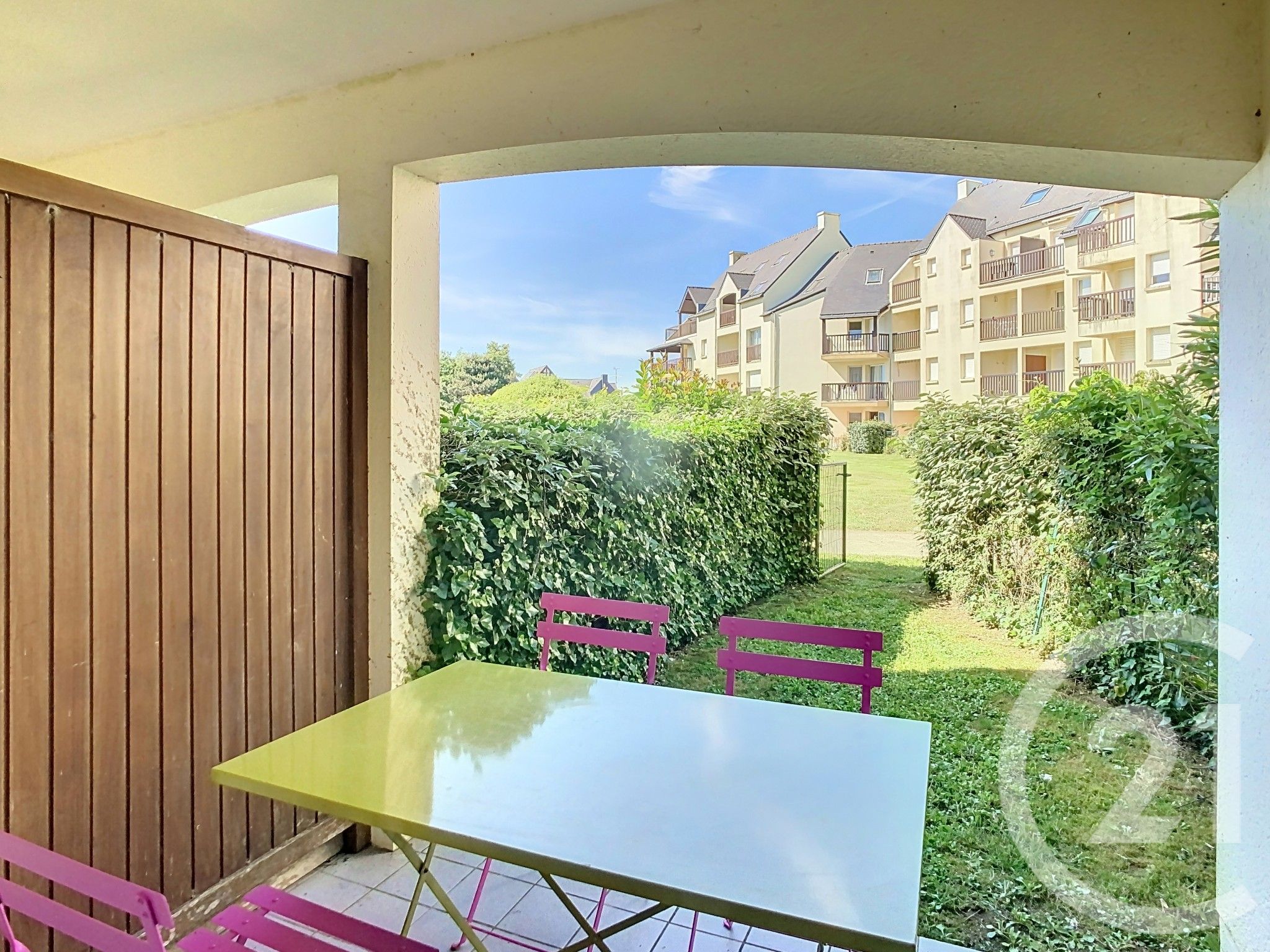 A proximité immédiate du port du Crouesty, de ses commerces, ainsi que de la plage du Fogeo, Century 21 vous présente cet appartement T2 de 29m² habitables en RDC d'une résidence entretenue aux faibles charges. Il se compose d'une entrée desservant une chambre, un WC séparé, une salle d'eau, ainsi qu'une cuisine ouverte sur un séjour donnant accès à une terrasse privative et un jardinet. Emplacement prisé pour ce bien idéal pour vacances en famille ou investissement locatif, à visiter sans plus tarder !