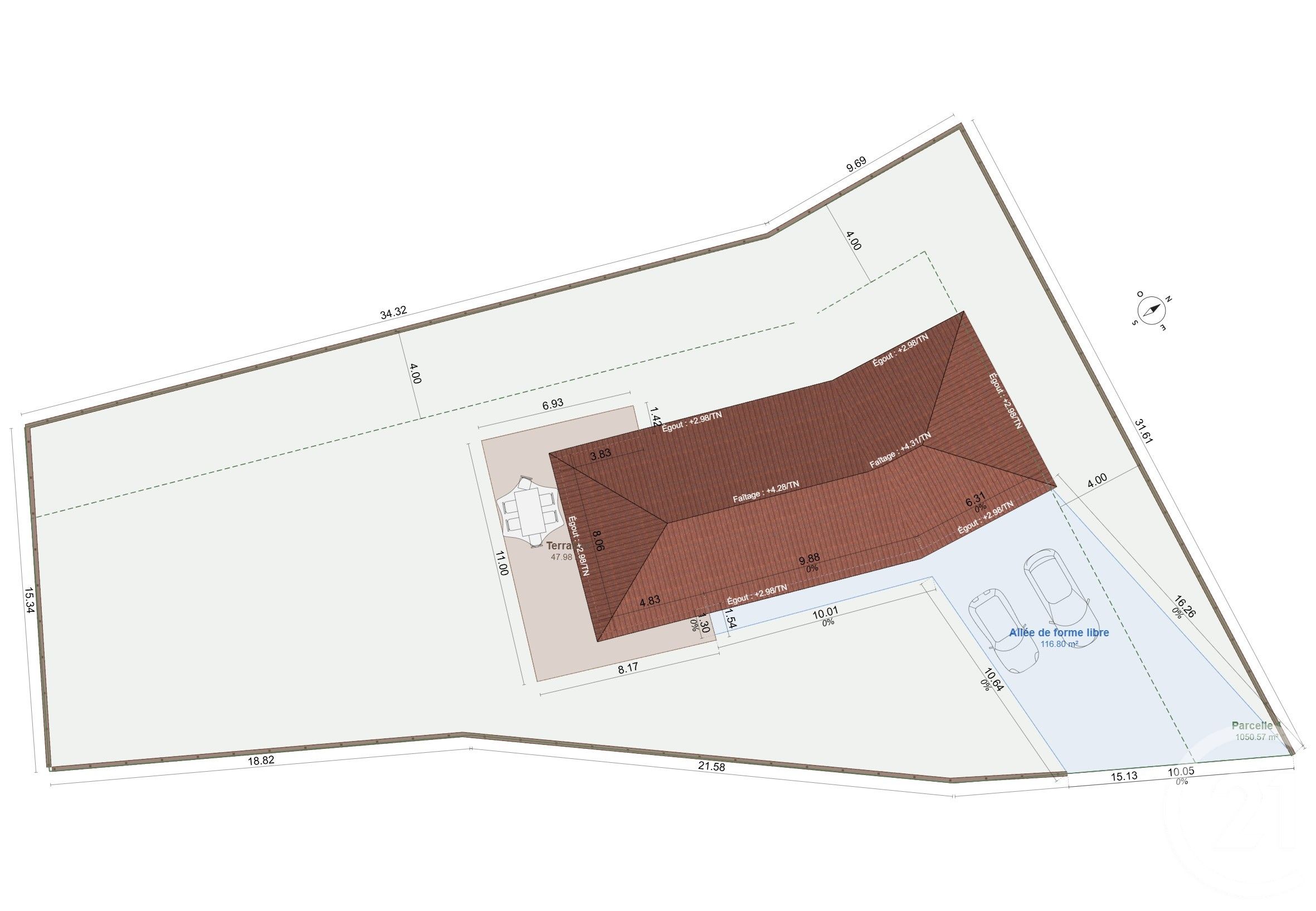 - Surface totale : 1054 m2