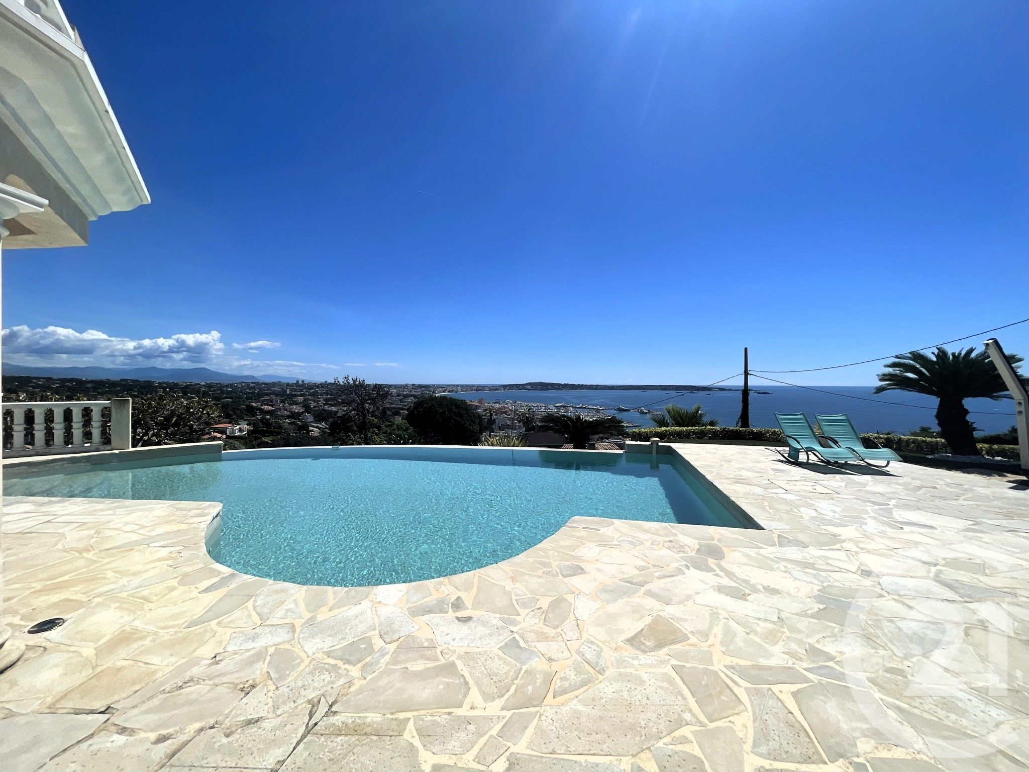 Located on the heights of Golfe Juan, in a residential neighborhood, exceptional villa of 311m² offering panoramic views of the sea and Cap d'Antibes. Built in the early 2000s, this villa is spread over two main levels bathed in light and facing the Mediterranean.