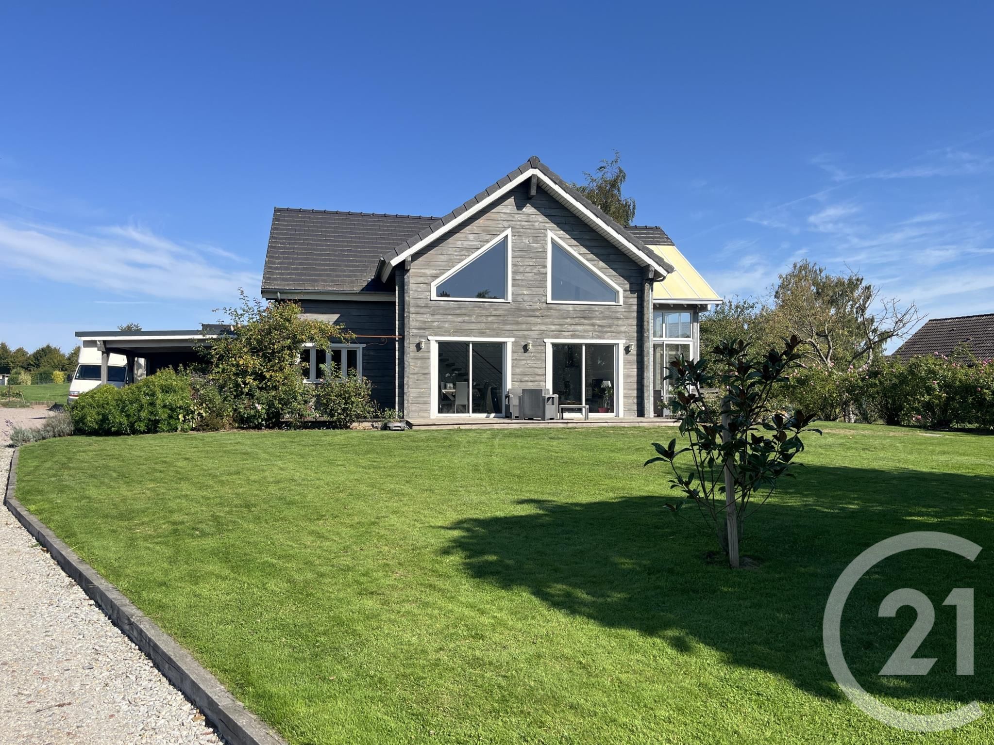 Découvrez cette maison bois de 5 pièces principale, idéale pour une famille qui recherche une bien atypique et très lumineux. Avec ses 142 mètres carrés habitables, elle offre un espace de vie toit cathédrale avec mezzanine. Elle répond aux besoins de ceux qui souhaitent un environnement calme, dans un écrin de verdure. Véritable havre de paix, la maison est à proximité de la ville, sur l'axe de Caen. Garage fermé et carport pour 2 voitures.