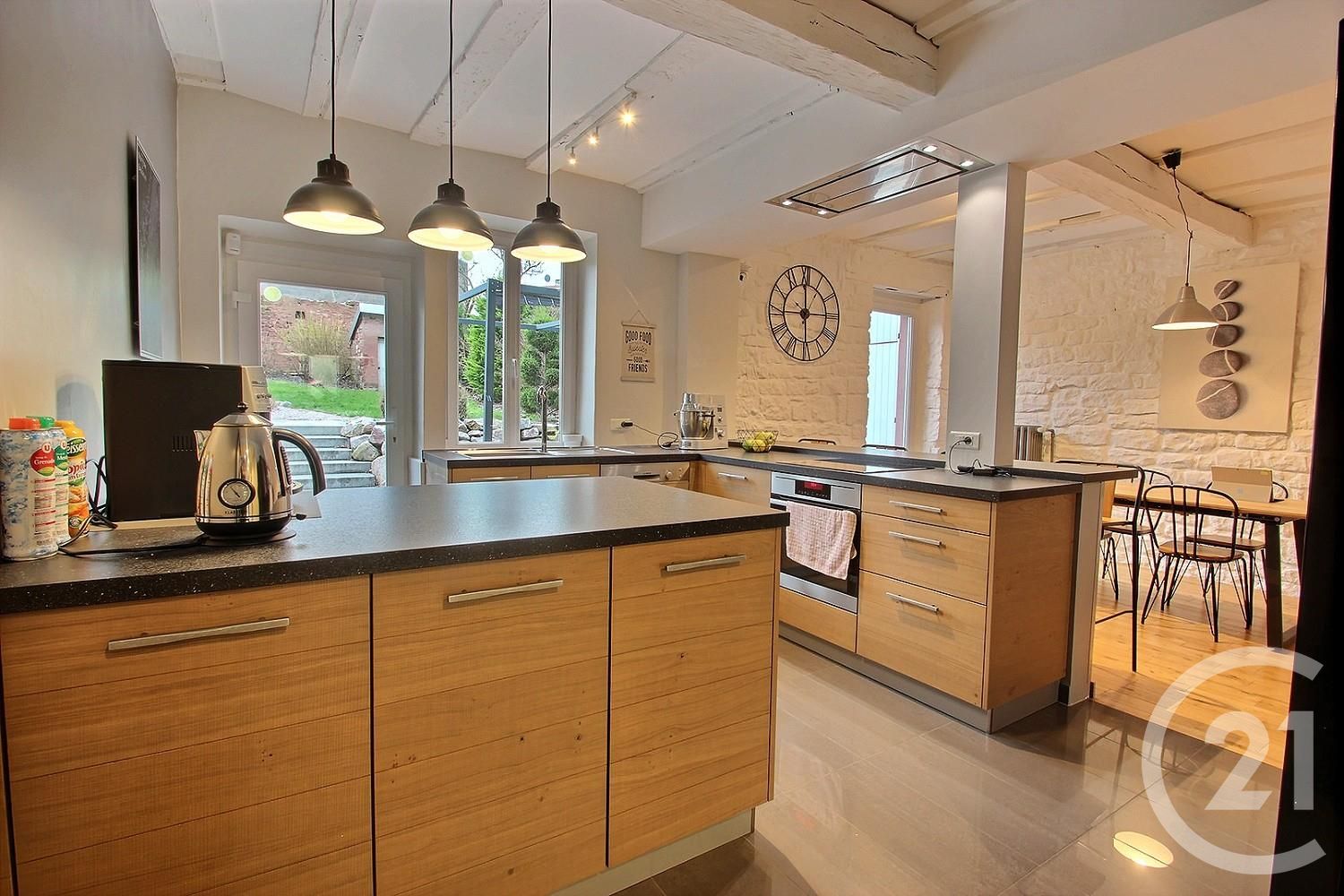 - Un salon/ séjour de 37 m² (avec cheminée), ouvert sur une grande cuisine familiale, aménagée et équipée de 15.75 m² donnant sur le jardin
