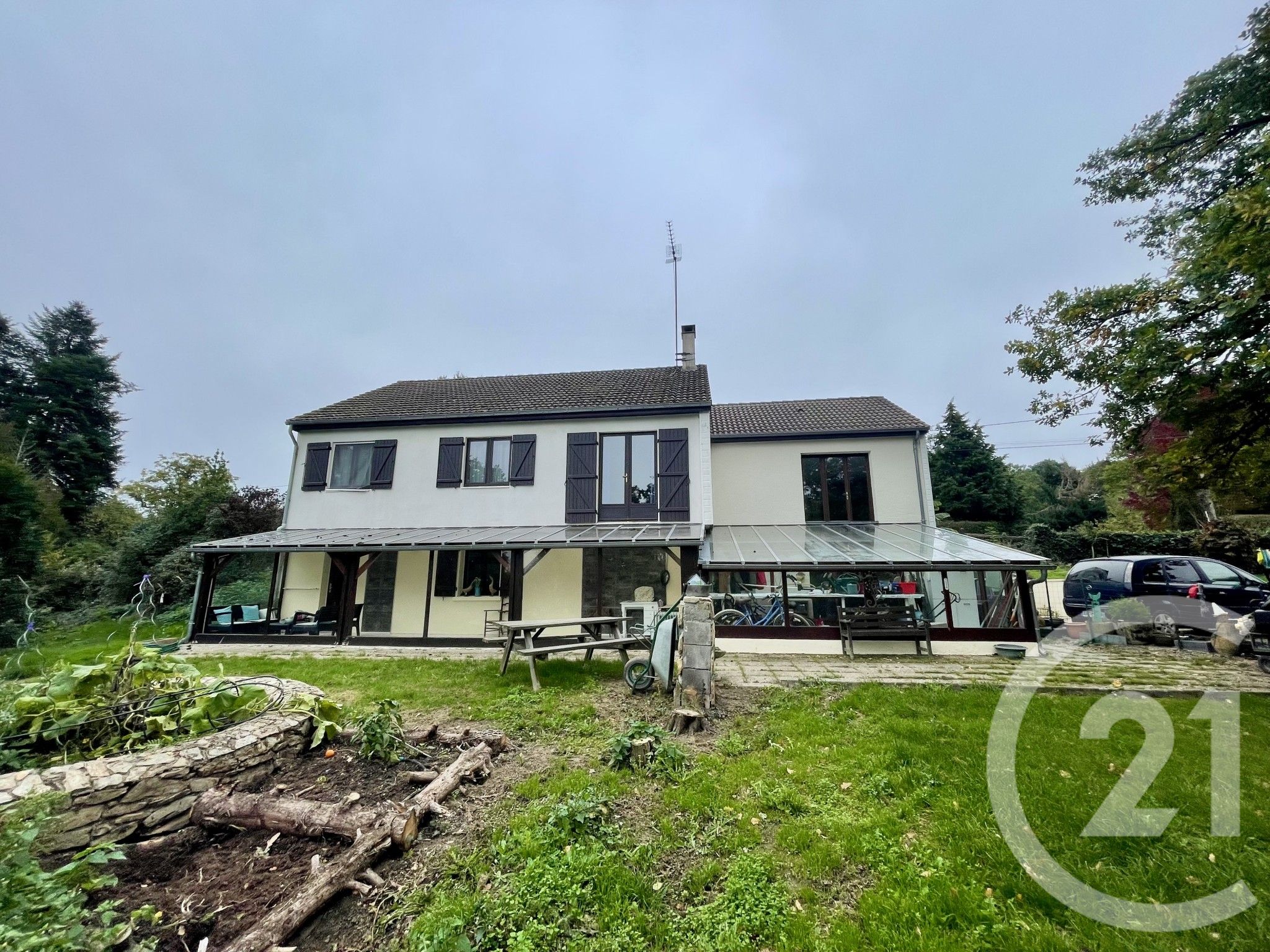 Elle offre une grande pièce de vie avec cuisine ouverte, ainsi qu'une véranda lumineuse donnant sur le jardin.