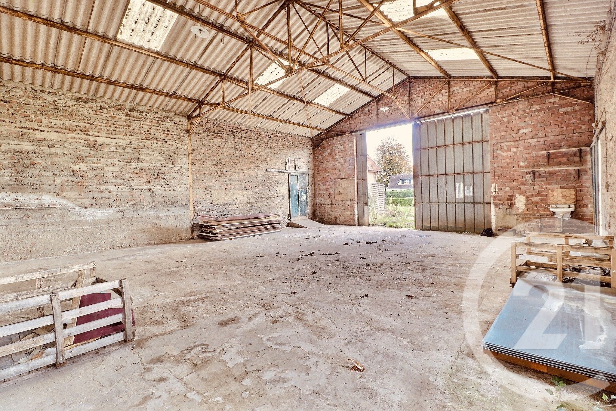 Il possède une grande porte de 3.95m de haut et 4.95m de large possibilité de rentrer de grands véhicules.