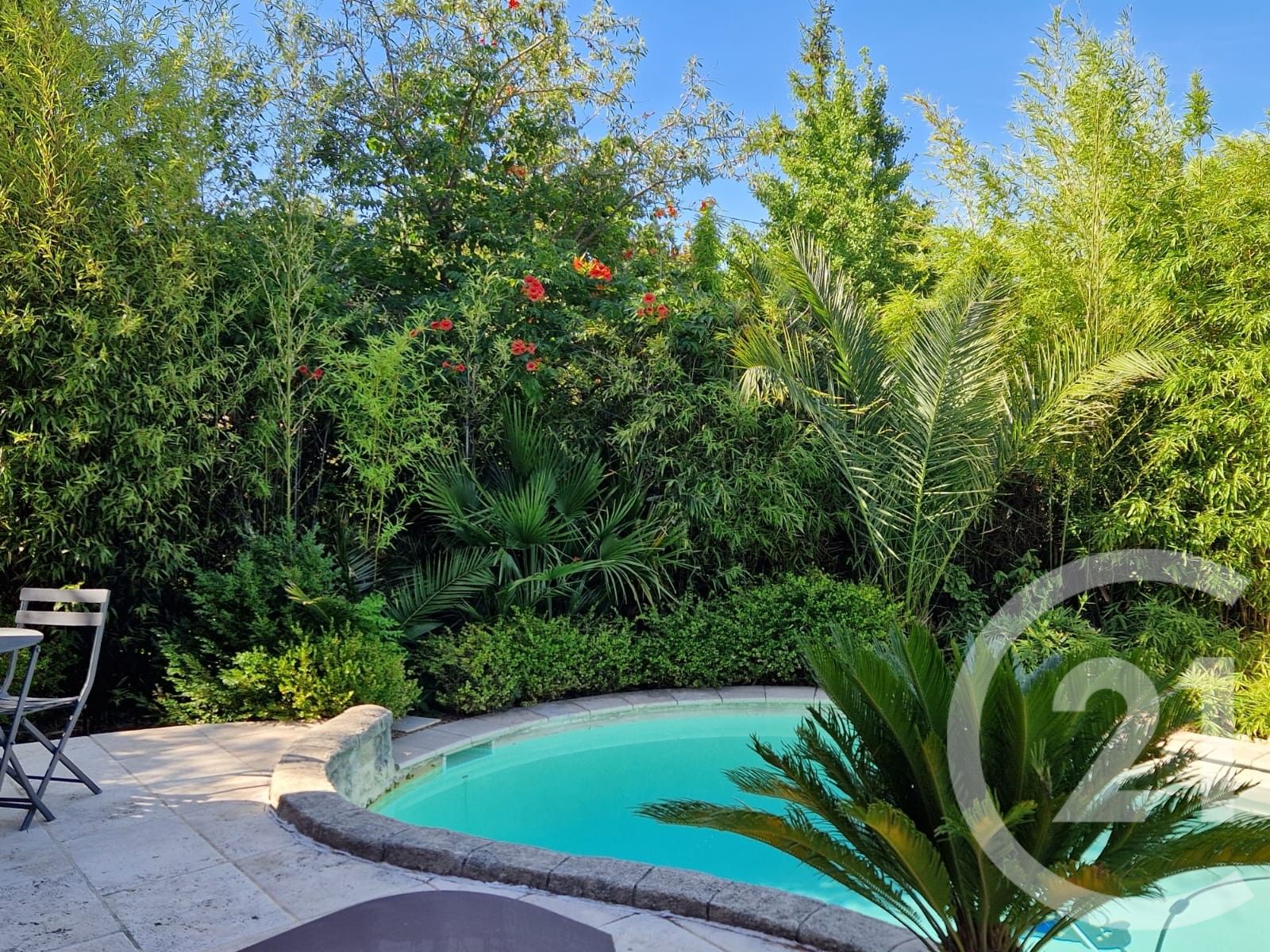 À l'extérieur, le jardin parfaitement entretenu offre un véritable écrin de verdure. La piscine, idéalement exposée, invite à la détente et aux moments de convivialité en famille ou entre amis. L'aménagement du terrain, sans vis-à-vis, garantit une tranquillité absolue et une grande intimité.