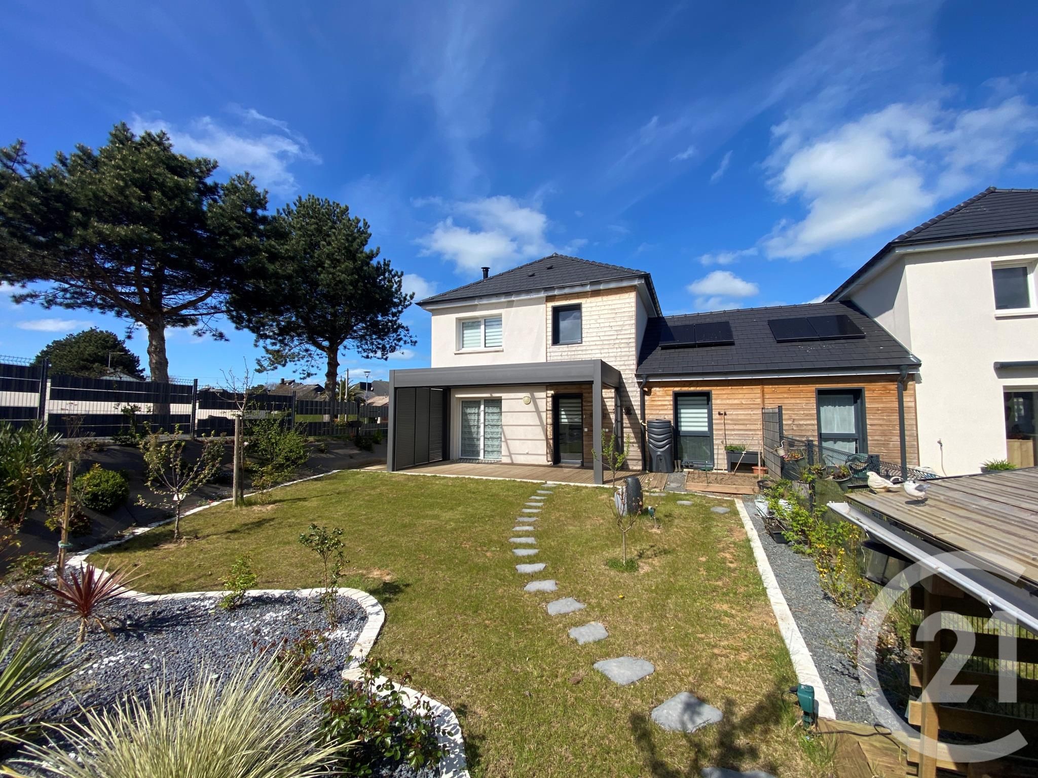 Son jardin est paysagé, un garage ainsi qu'une place de parking sont à disposition