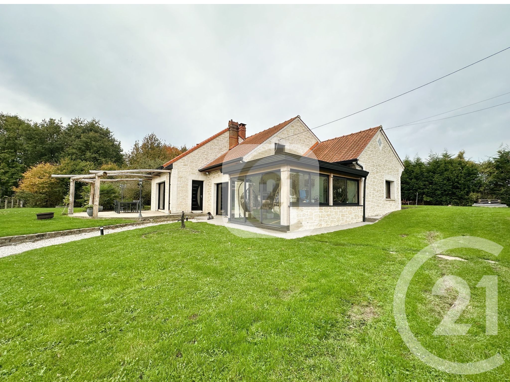 Century 21 Transimmo vous invite à découvrir cette jolie propriété équestre située à Longueville, idéalement exposée Sud-Ouest, offrant un cadre de vie paisible et arboré sur une parcelle de 4 700 m².