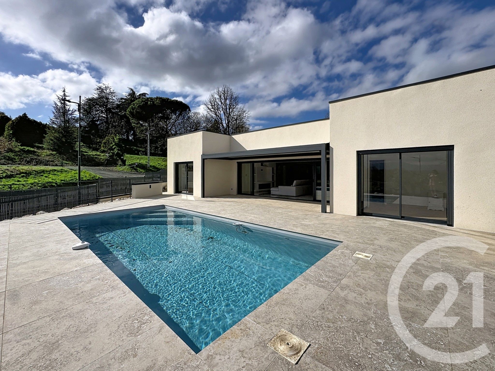 A l'extérieur, la propriété dévoile un véritable espace détente avec piscine, terrasse et pergola bioclimatique ainsi qu'un garage.