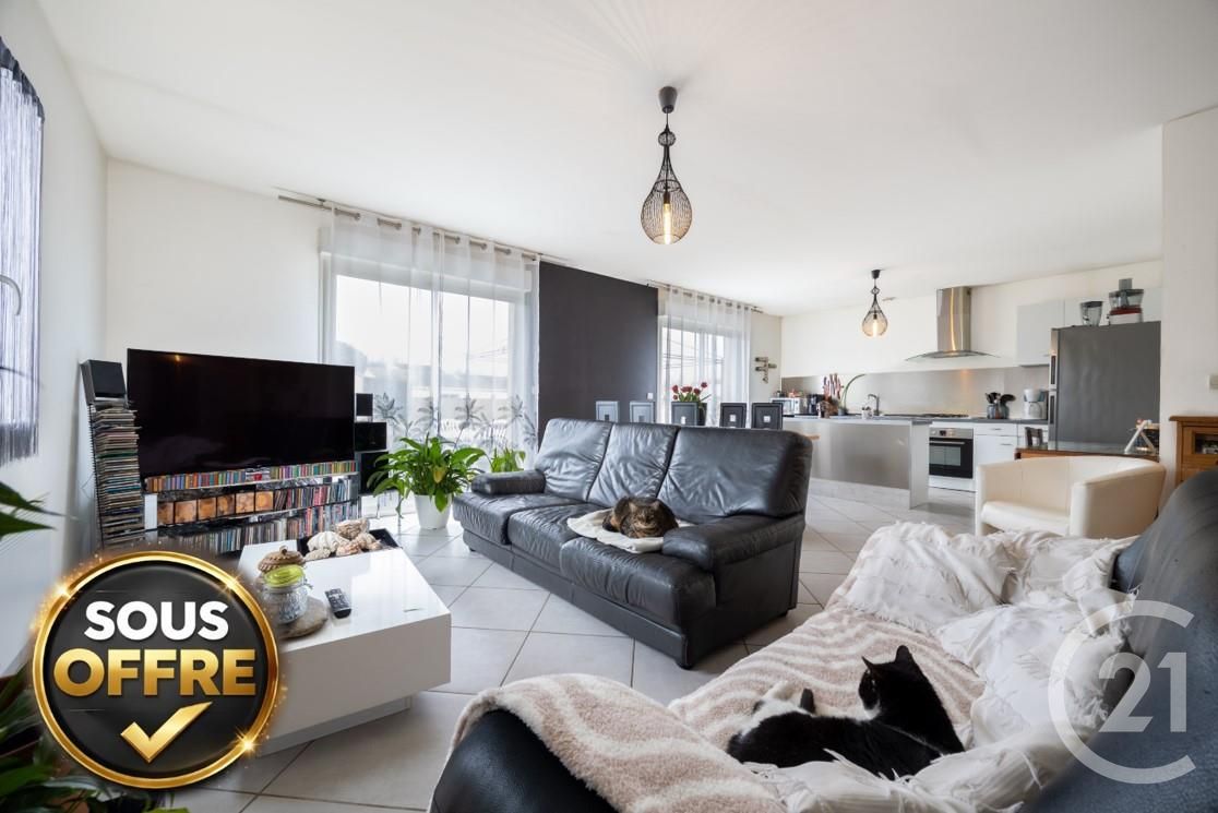 Le salon-séjour avec cuisine ouverte, véritable cœur de la maison, bénéficie de deux grandes baies vitrées qui prolongent naturellement l'espace de vie vers la terrasse.