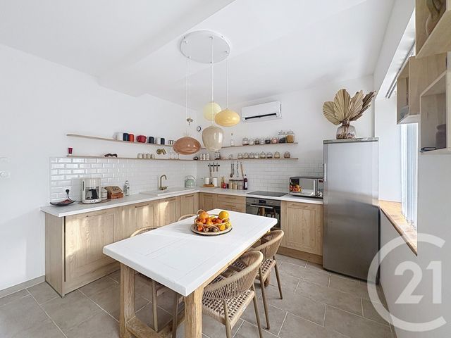 Le rez-de-chaussée se compose d'une cuisine aménagée et équipée, ouverte sur un salon-séjour lumineux, parfait pour des moments de convivialité.