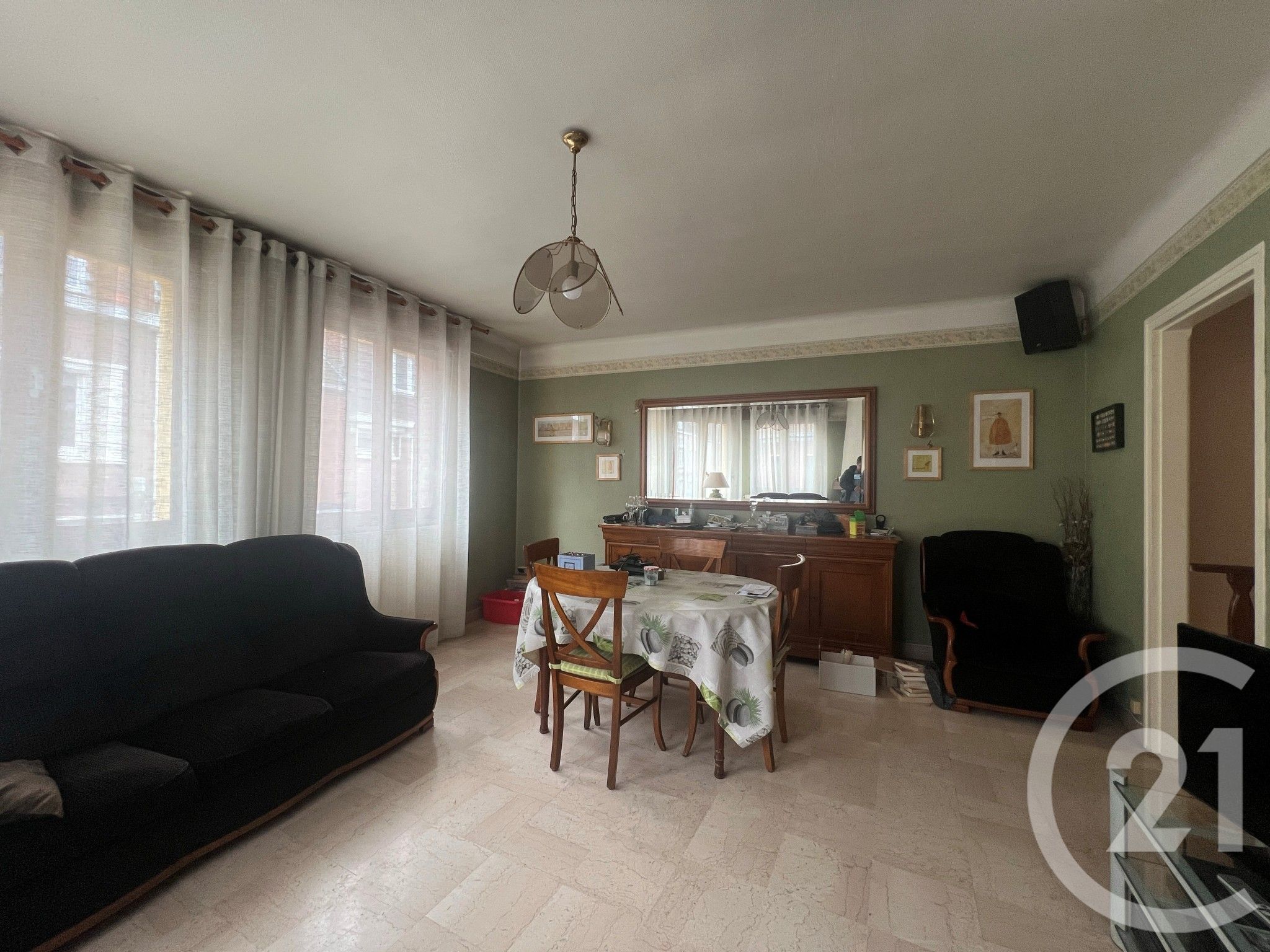 Un séjour très lumineux car en angle et donc avec des fenêtres sur chaque coté.