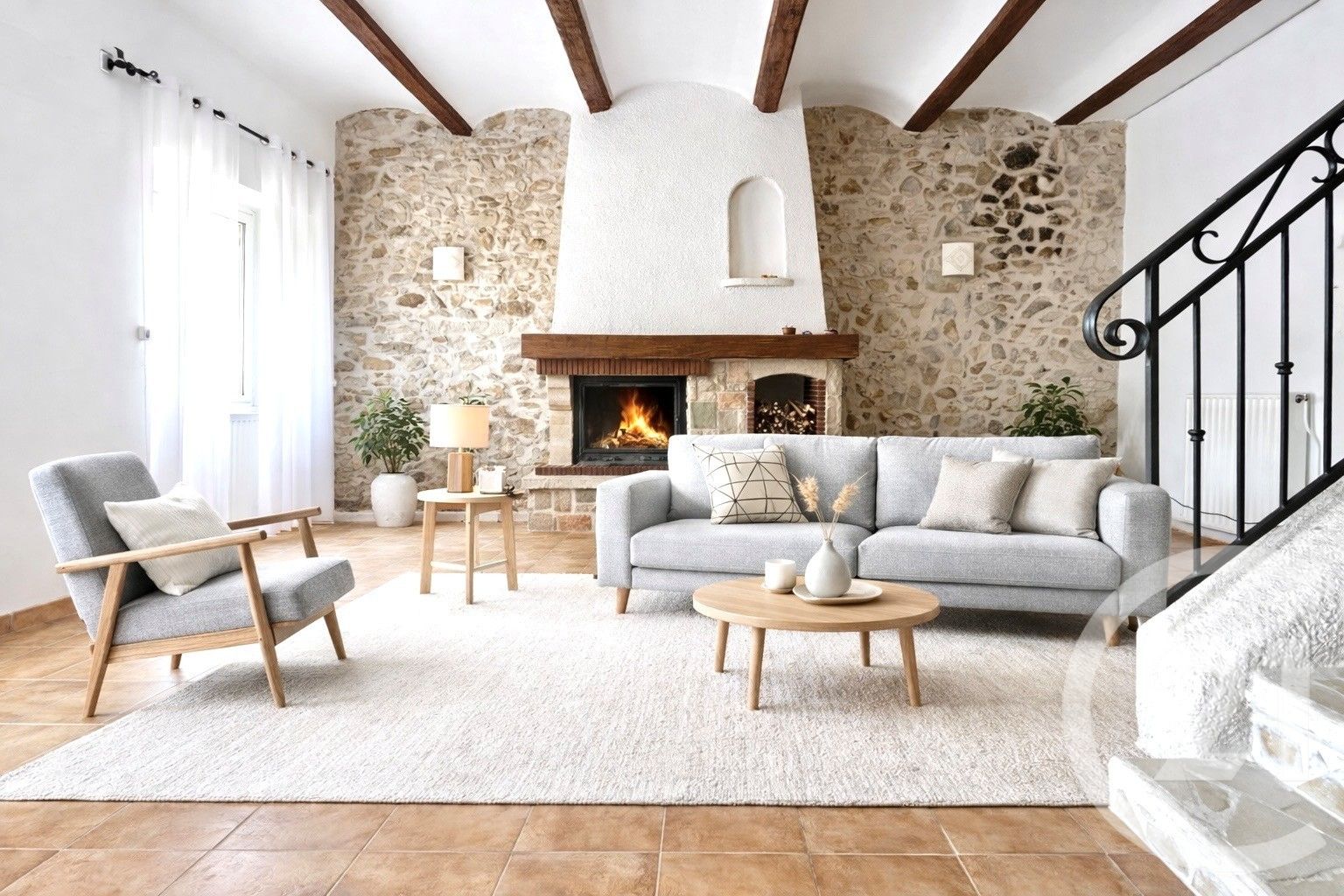 - Cheminée, double vitrage, poutres