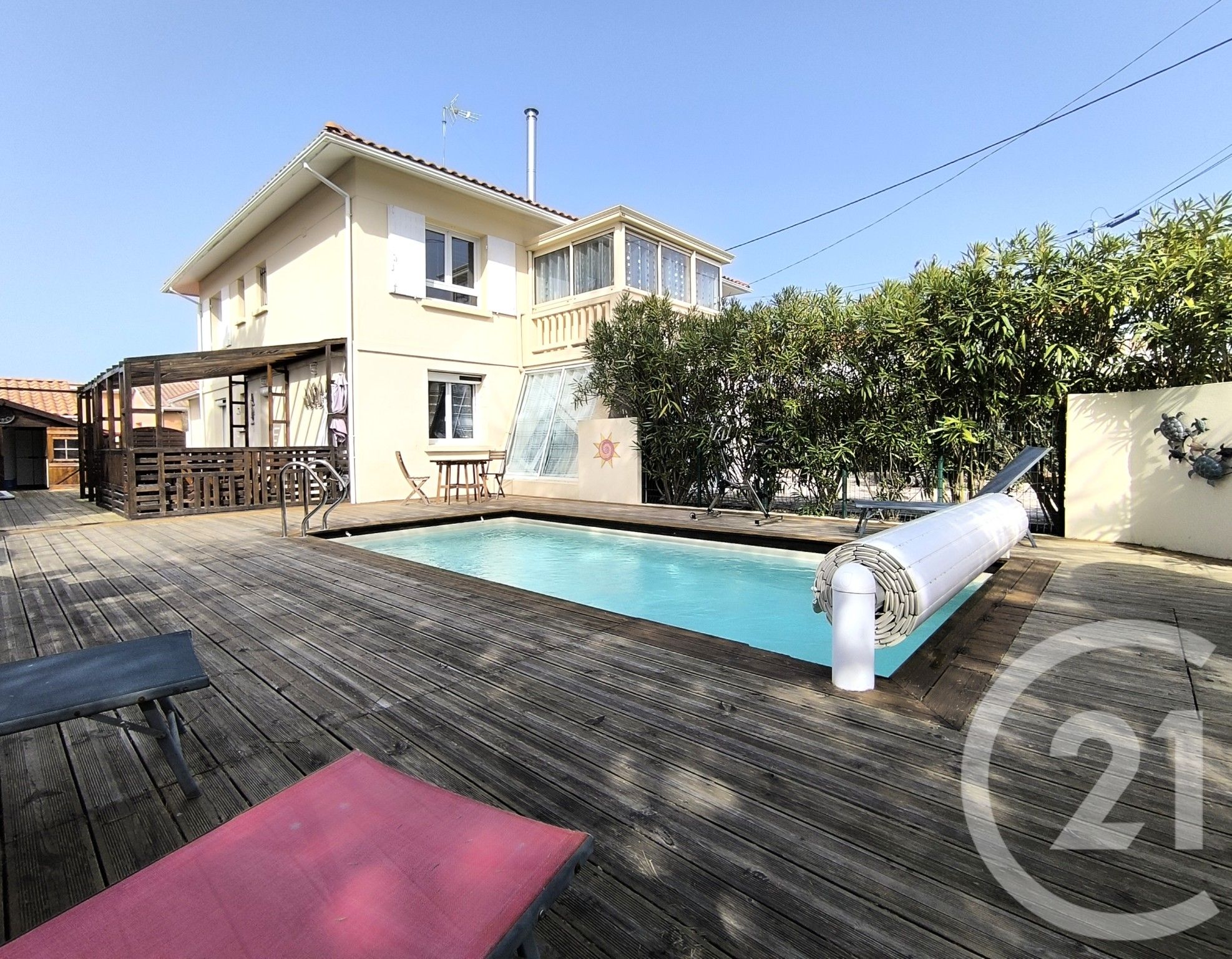 À l'extérieur, vous profiterez d'un bel espace aménagé avec piscine chauffée, terrasse, cuisine d'été, idéal pour partager des moments conviviaux en famille ou entre amis.
