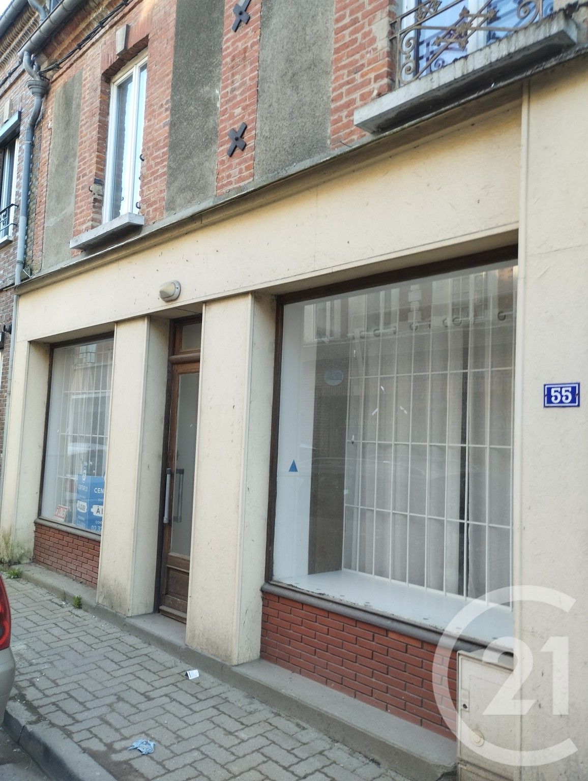 Celui-ci se compose de deux pièces principales avec chacune une vitrine donnant sur la rue et une porte d'entrée centrale.