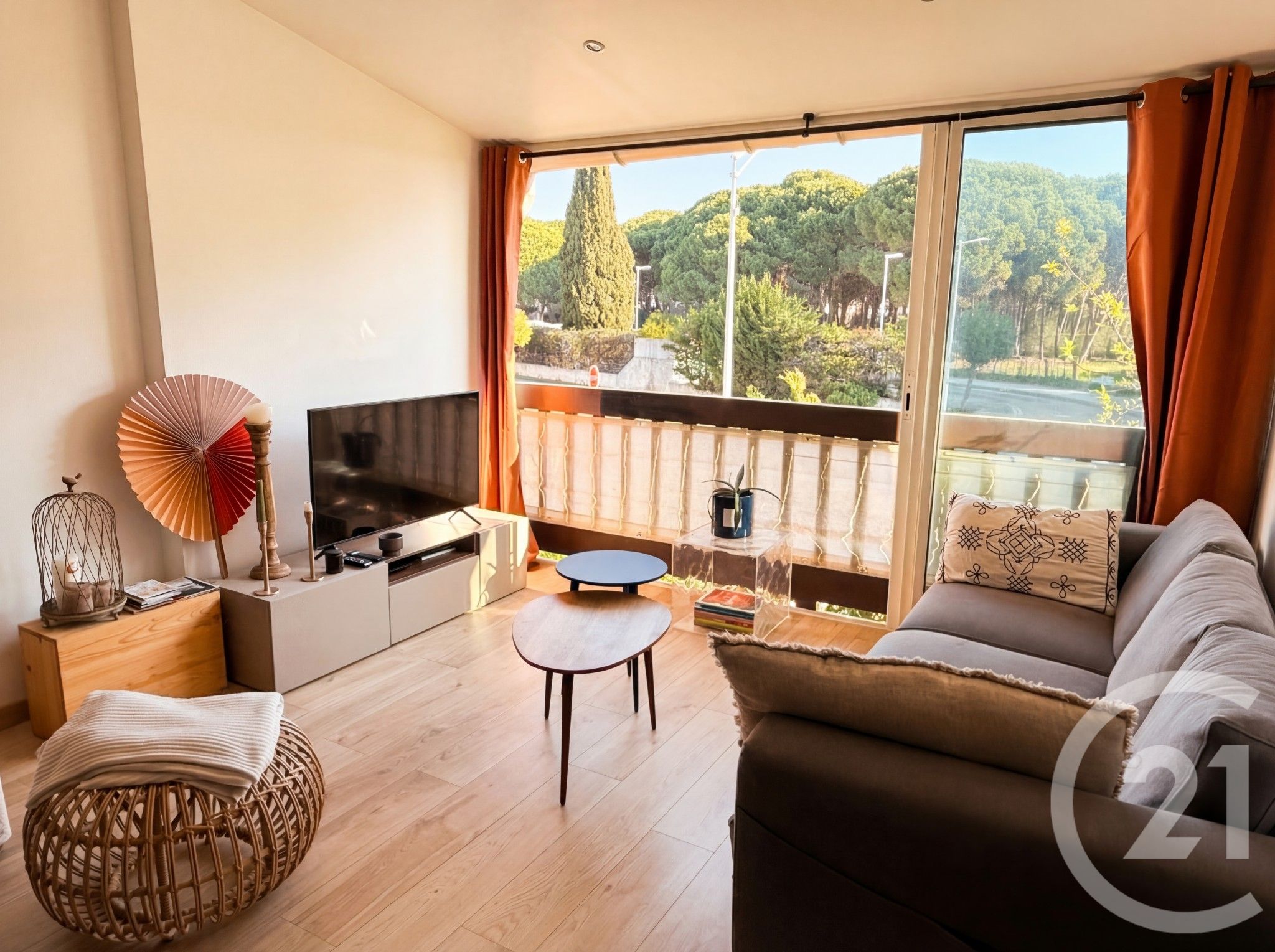 Dès l'entrée, vous serez séduit par une distribution fonctionnelle : une salle d'eau moderne, un WC indépendant, ainsi qu'un agréable séjour avec cuisine ouverte. Exposé Nord-Est, cet espace de vie offre une magnifique vue dégagée sur la pinède, sans aucun vis-à-vis.