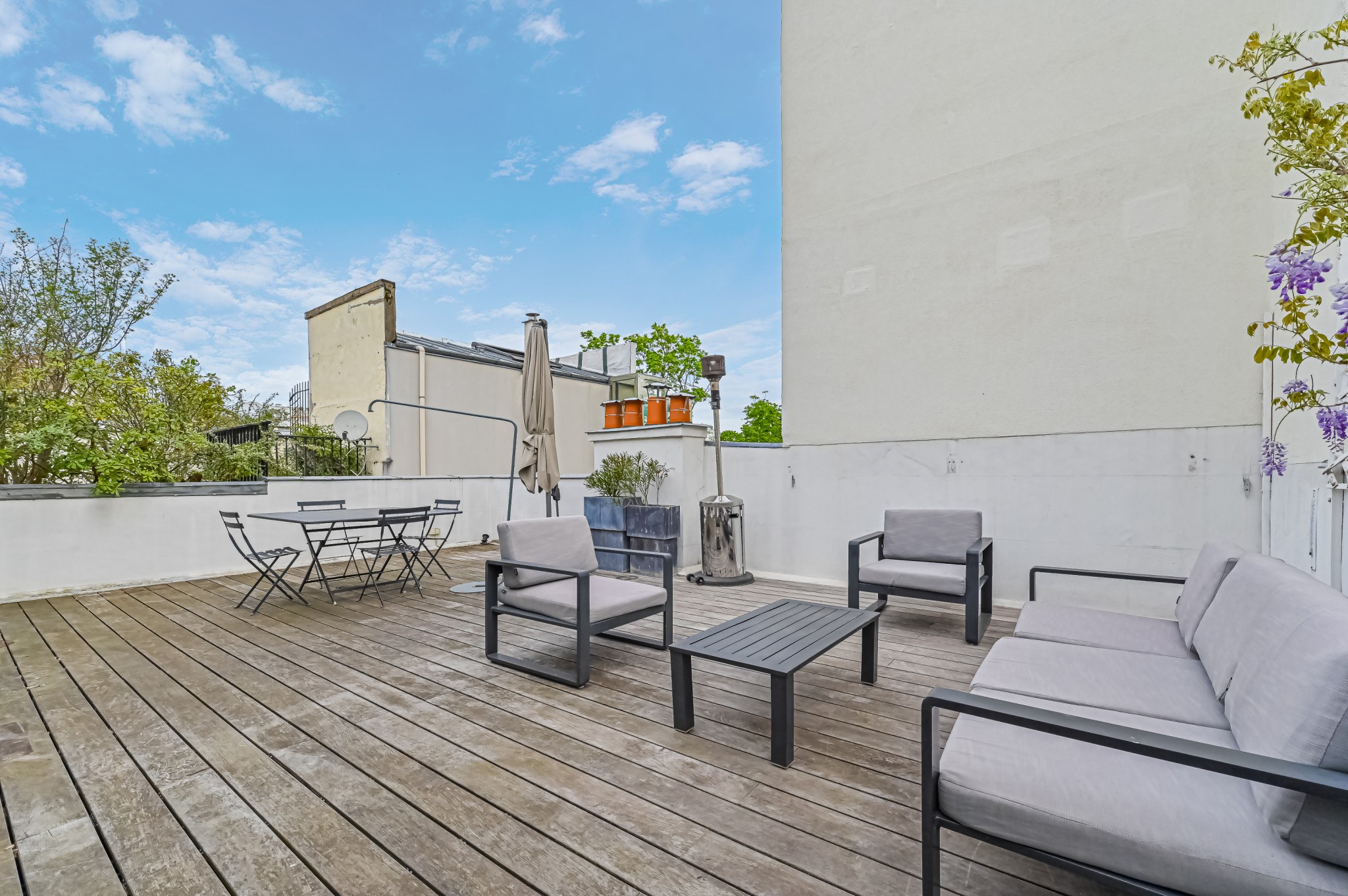Sur le toit de la maison, une terrasse aménagée de 50 m² avec cuisine d'été et rangements.