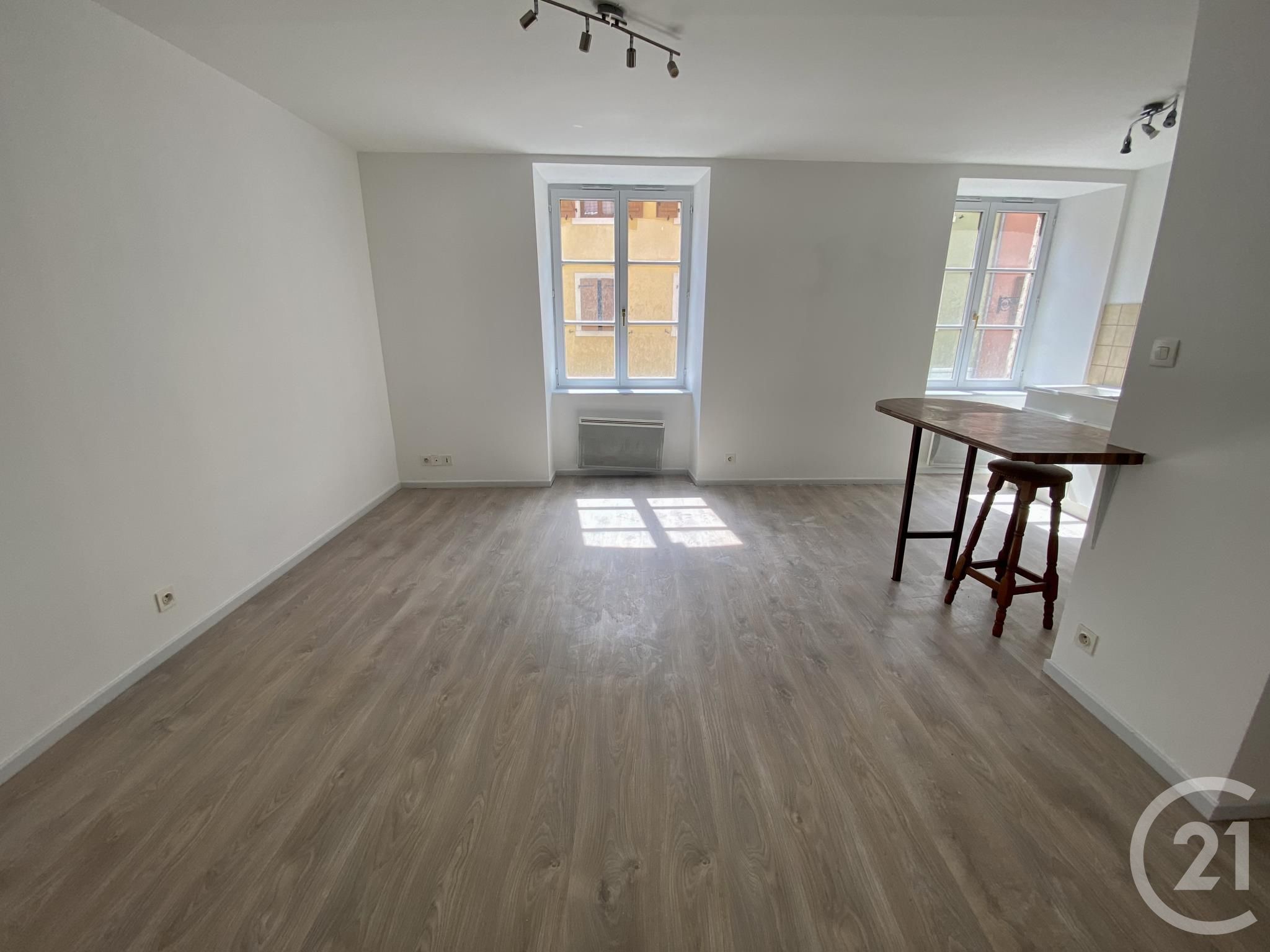 A Louer, au cœur du centre-ville, appartement T2, situé au 1er étage, comprenant une entrée, une cuisine ouverte sur le séjour, une chambre, une salle d'eau avec douche ainsi qu'un wc.