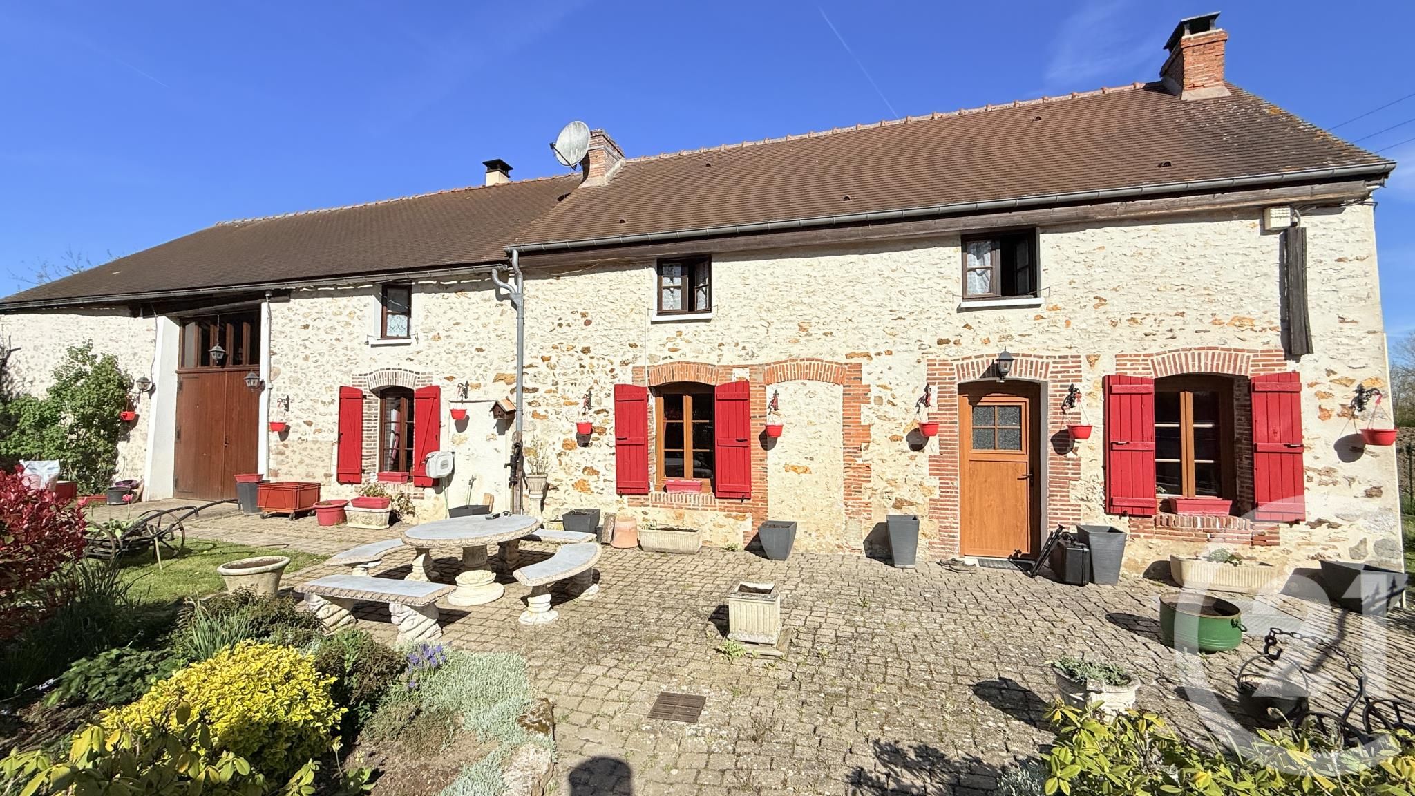Elle se compose d'une briarde spacieuse avec sa grange attenante et grenier, ainsi que d'une seconde grange indépendante d'environ 90 m² accompagnée d'un terrain à bâtir. L'ensemble est implanté sur près de 2 hectares mêlant chênaie et étang, offrant un cadre de vie unique.