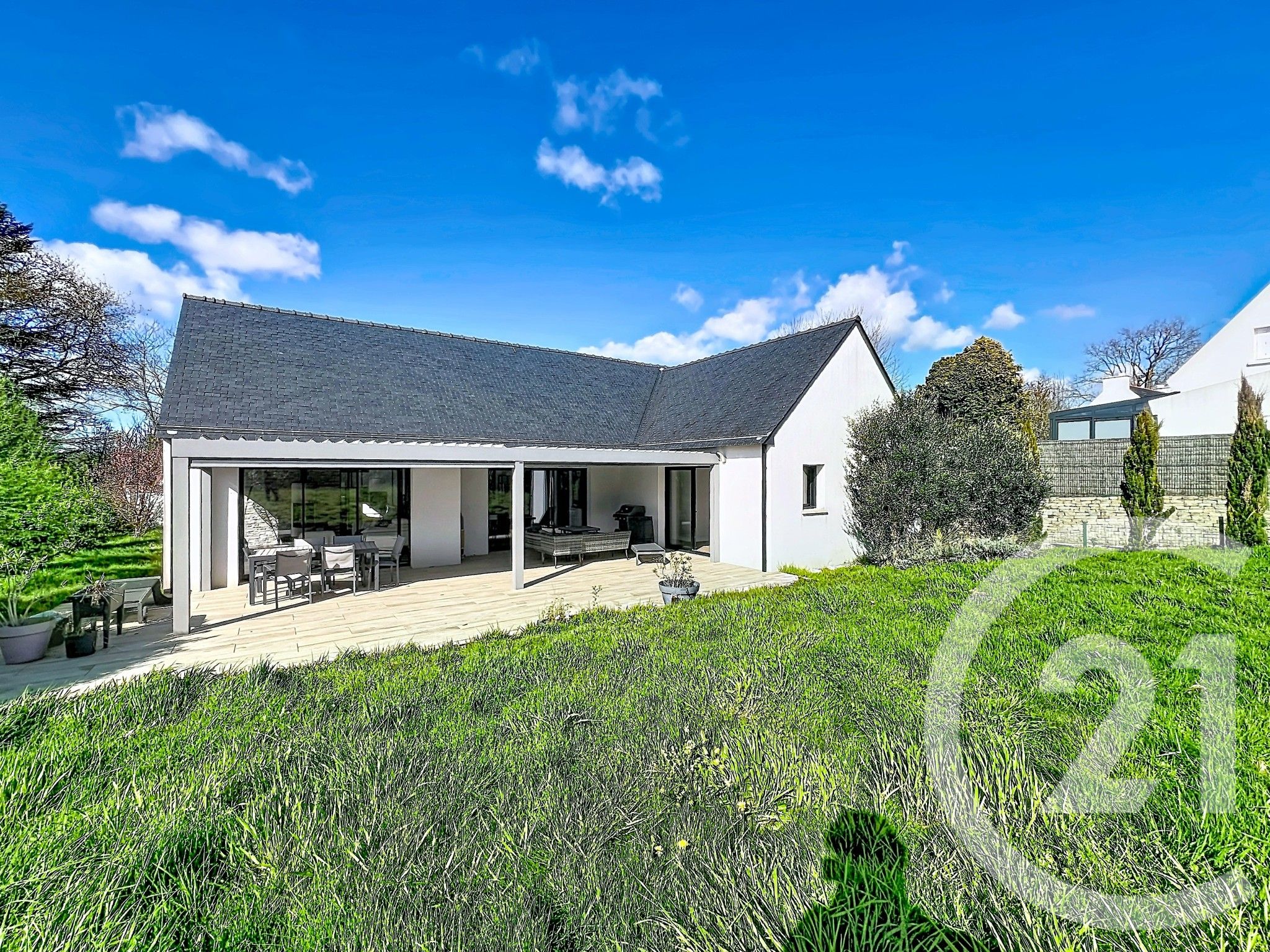 Vous recherchez le confort du neuf sans attendre la construction ? Découvrez cette superbe propriété contemporaine offrant une vie de plain-pied complète sur un terrain clos et paysagé de 1000 m².