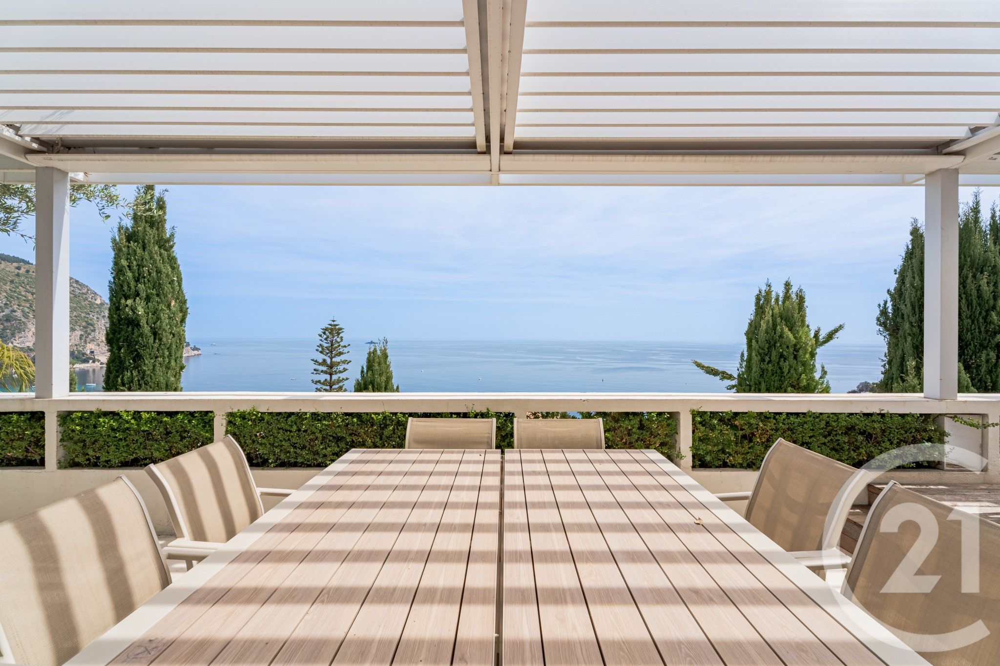 Set on a 390 m² plot, the villa benefits from beautiful landscaped terraces as well as a pool with an unobstructed view of the Mediterranean.