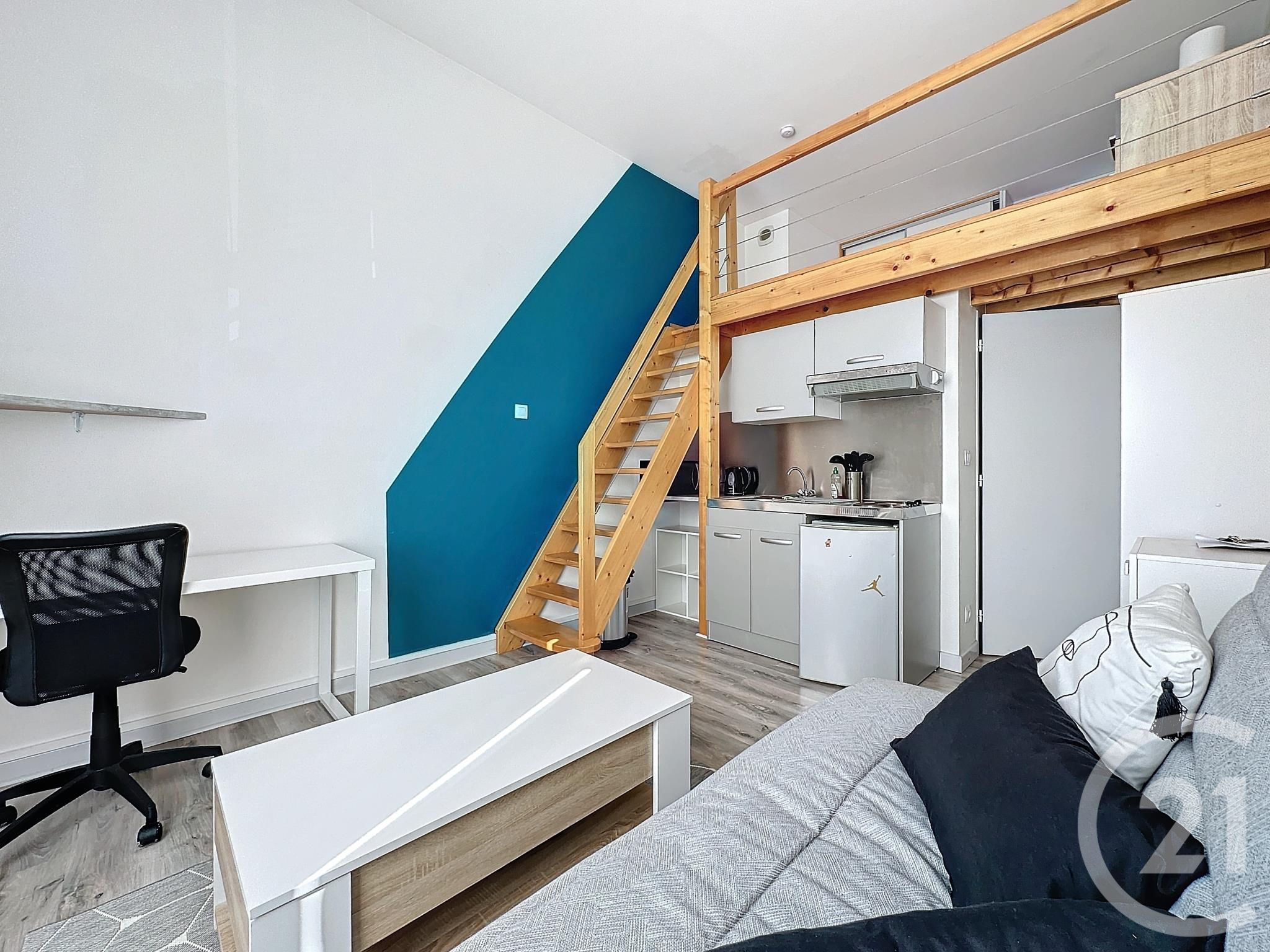 Ce studio comprend une entrée, une salle d'eau avec toilettes et machine à laver, une pièce de vie avec coin kitchenette équipée et en mezzanine, un coin nuit avec lit 2 places et rangements.