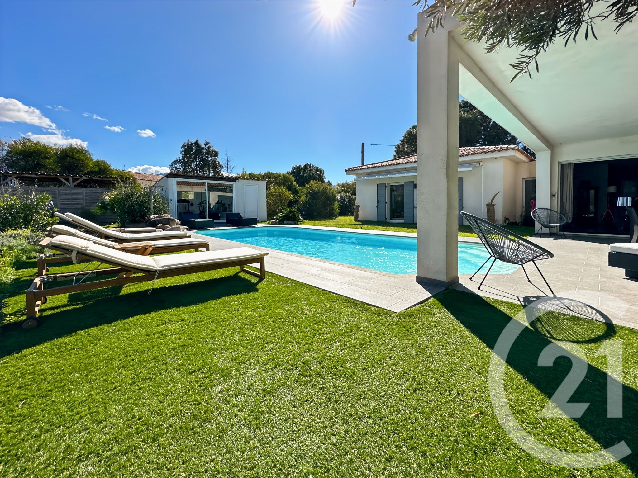 Une piscine de 9 x 4 mètres complète cet espace extérieur agréable et fonctionnel.