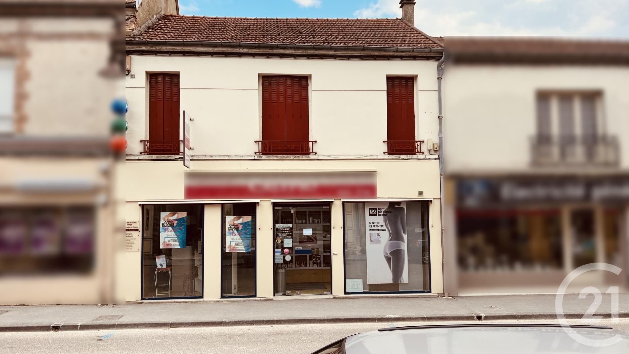 Au rez-de-chaussée, un vaste espace commercial vous accueille avec une grande salle d'accueil, idéale pour recevoir vos clients dans un cadre professionnel et accueillant. Deux cabines aménagées avec goût, une salle d'eau moderne et des toilettes complètent cet espace, offrant tout le confort nécessaire pour votre activité commerciale.